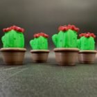 🎨 Bright green body, red flower topper, and brown pot